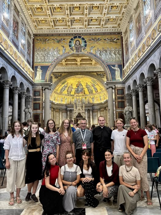 Parta z oderské Střední pedagogická škola a Střední zdravotnická škola sv. Anežky České se spolu se svým školním kaplanem P. Janem Slepičkou rozhodla putovat poslední kilometry na Jubileum mládeže pěšky.