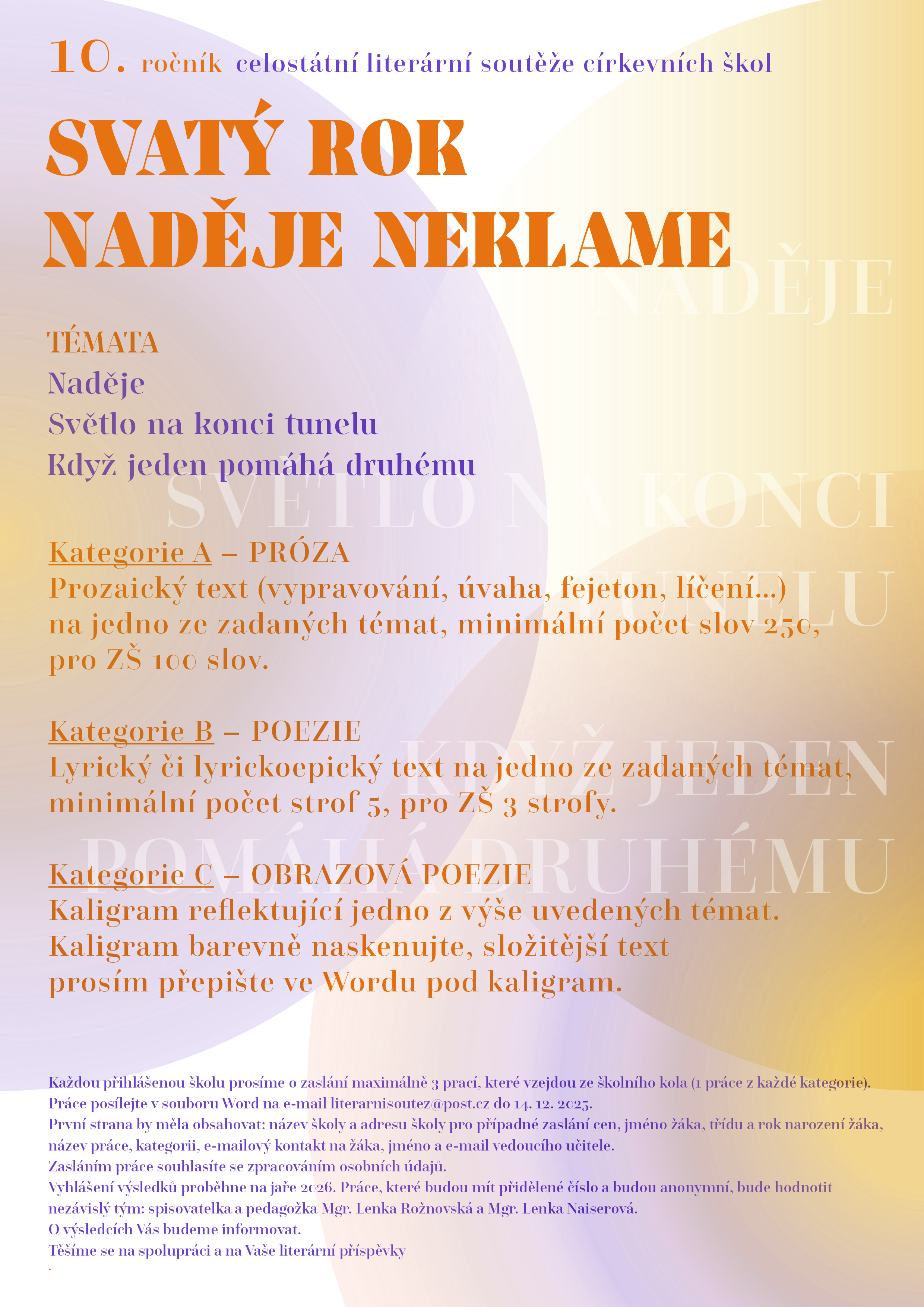 Srdečně zveme děti a studenty církevních škol k účasti na již 10. ročníku celostátní literární soutěže.