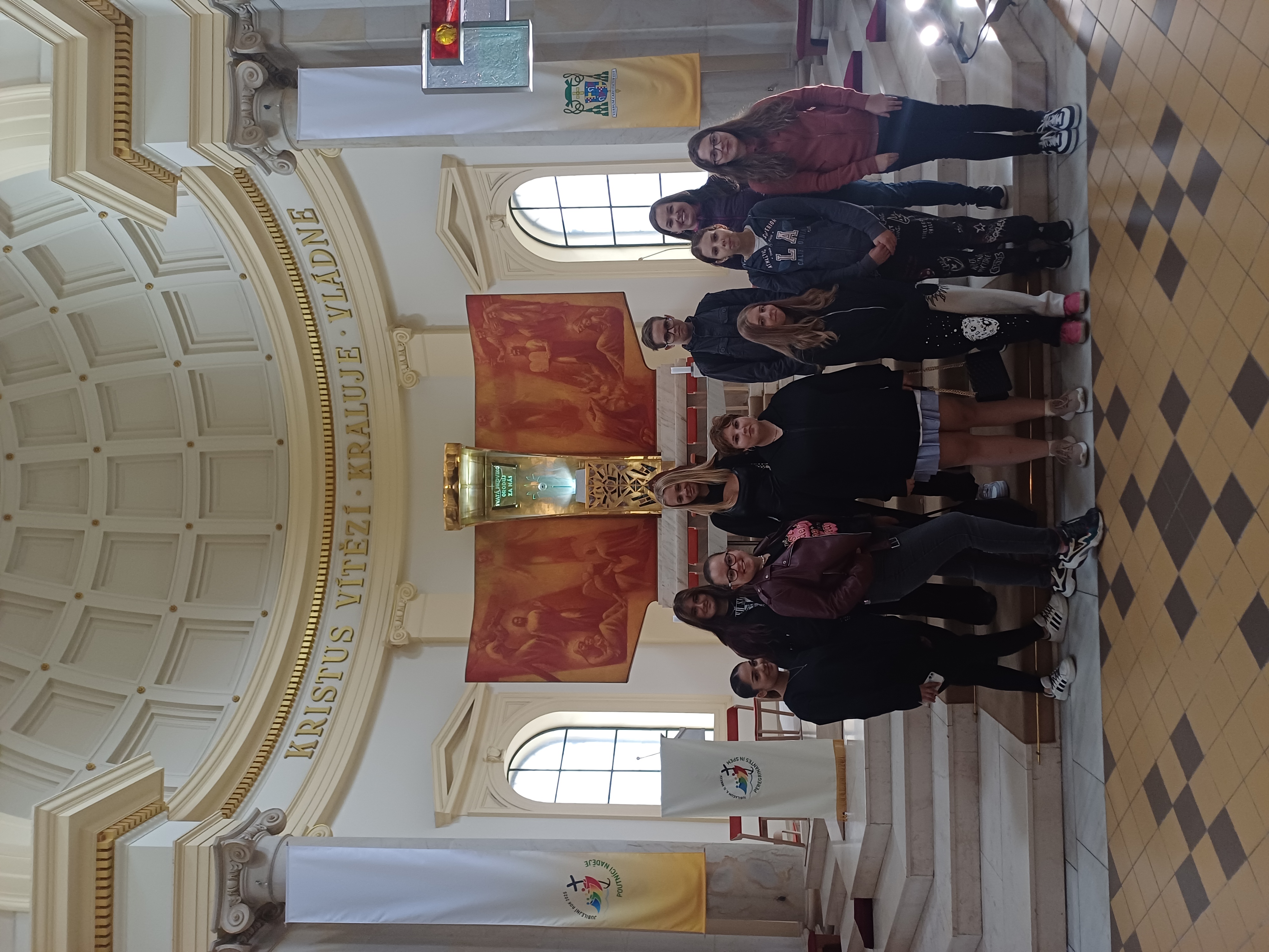Studenti a pedagogové naší školy oslavili Den církevních škol návštěvou památek v Odrách, Ostravě a na poutním místě Cvilín u Krnova, kde sloužil mši školní kaplan Jan Slepička.