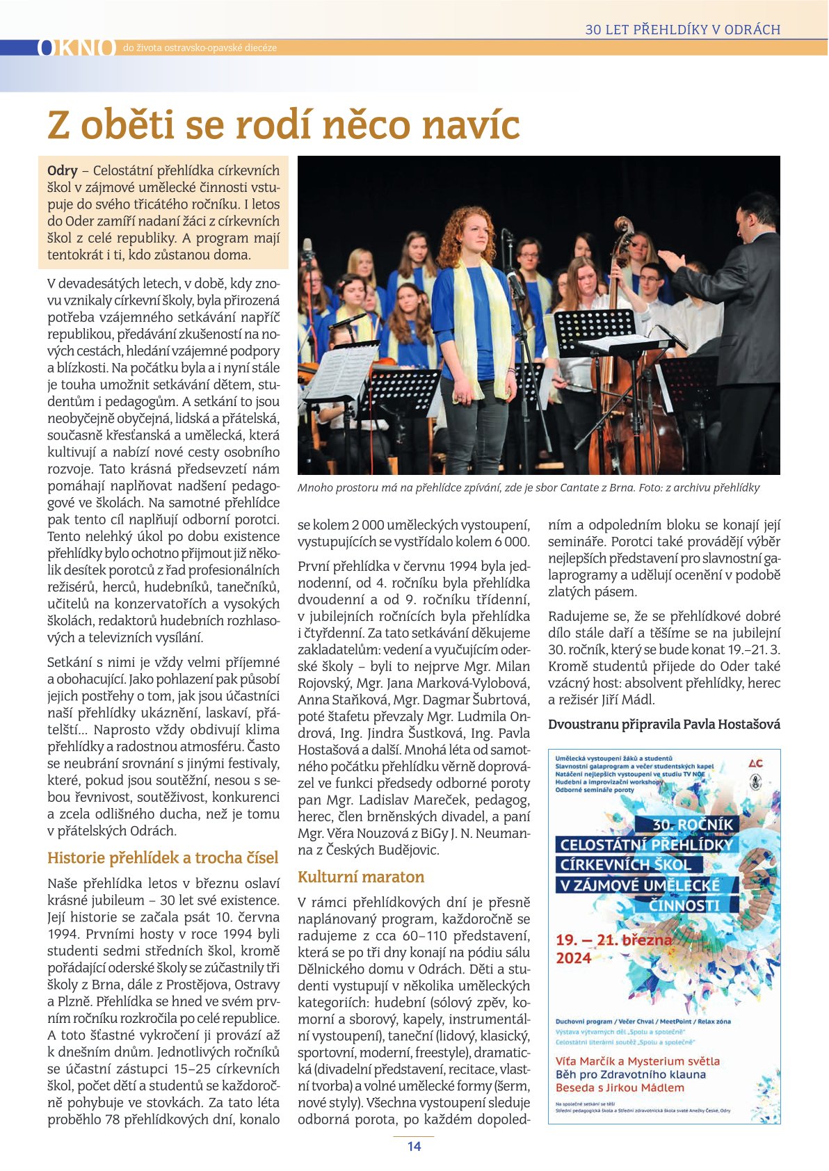 Dovolte mi, abych se touto cestou krátce ohlédl za úspěšně realizovaným projektem – účastí sboru Datio ze Střední pedagogické školy a Střední zdravotnické školy svaté Anežky České na festivalu Festa academica. Naše děvčata společně s Ondrou Přibylem mimořádně úspěšně a velmi výrazně reprezentovala školu na celostátním festivalu středoškolských sborů v Praze, který probíhal pod záštitou Unie českých pěveckých sborů a Ministerstva školství.